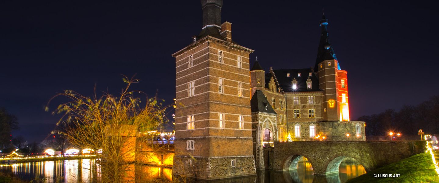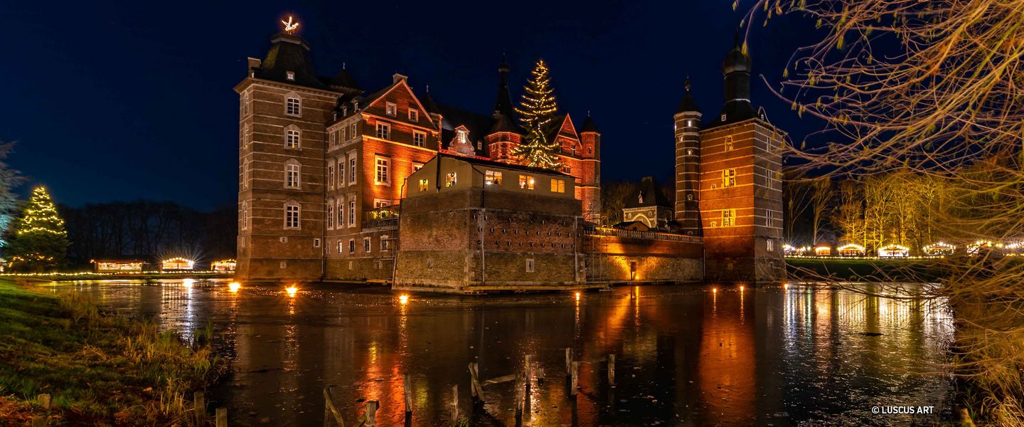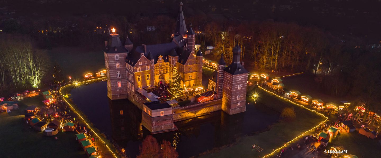 Schloss Merode ist eines der eindruckvollsten Renaissance-Wasserschlösser des Rheinlands und ist mit dem zugehörigen Park in der Adventszeit für die Besucher zugänglich. In den letzten Jahren hat sich der "Romantische Weihnachtsmarkt", welcher sich auf die Wurzeln der traditionellen, besinnlichen Weihnacht stützt, einen internationalen Ruf erlangt. Mit seiner gelungenen Mischung aus traditionellem Handwerk und ausgewählter Gastronomie, romantischen Lichtinszenierung, offenen Feuerstellen und dem eindrucksvoll beleuchteten Schloss bietet der Markt eine einzigartige Atmosphäre.