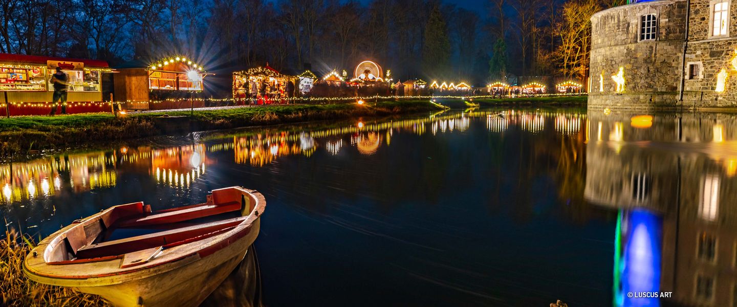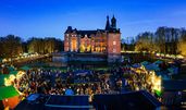 Am Ziel angekommen, öffnet sich die märchenhafte Kulisse des festlich geschmückten Schlossparks. Zwischen historischen Mauern, lodernden Feuerstellen und liebevoll dekorierten Holzhütten erleben Sie Adventsromantik pur. Kunsthandwerker zeigen ihr Können, regionale Spezialitäten verwöhnen den Gaumen und das gesamte Schlossareal erstrahlt im Lichterglanz.