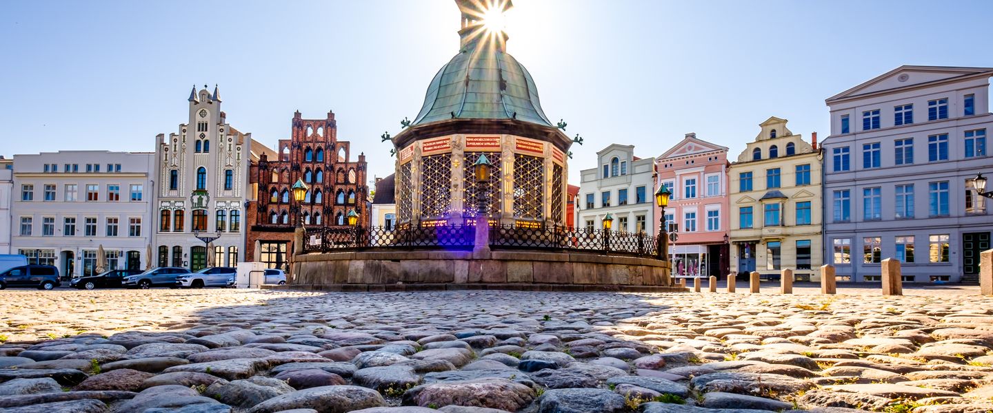 Der Marktplatz von Wismar ist ein beliebter Treffpunkt und wird von historischen Gebäuden umgeben, darunter das Schabbelhaus, das als eines der ältesten Bürgerhäuser der Stadt gilt. Hier finden regelmäßig Märkte und Veranstaltungen statt, die das kulturelle Leben der Stadt bereichern.